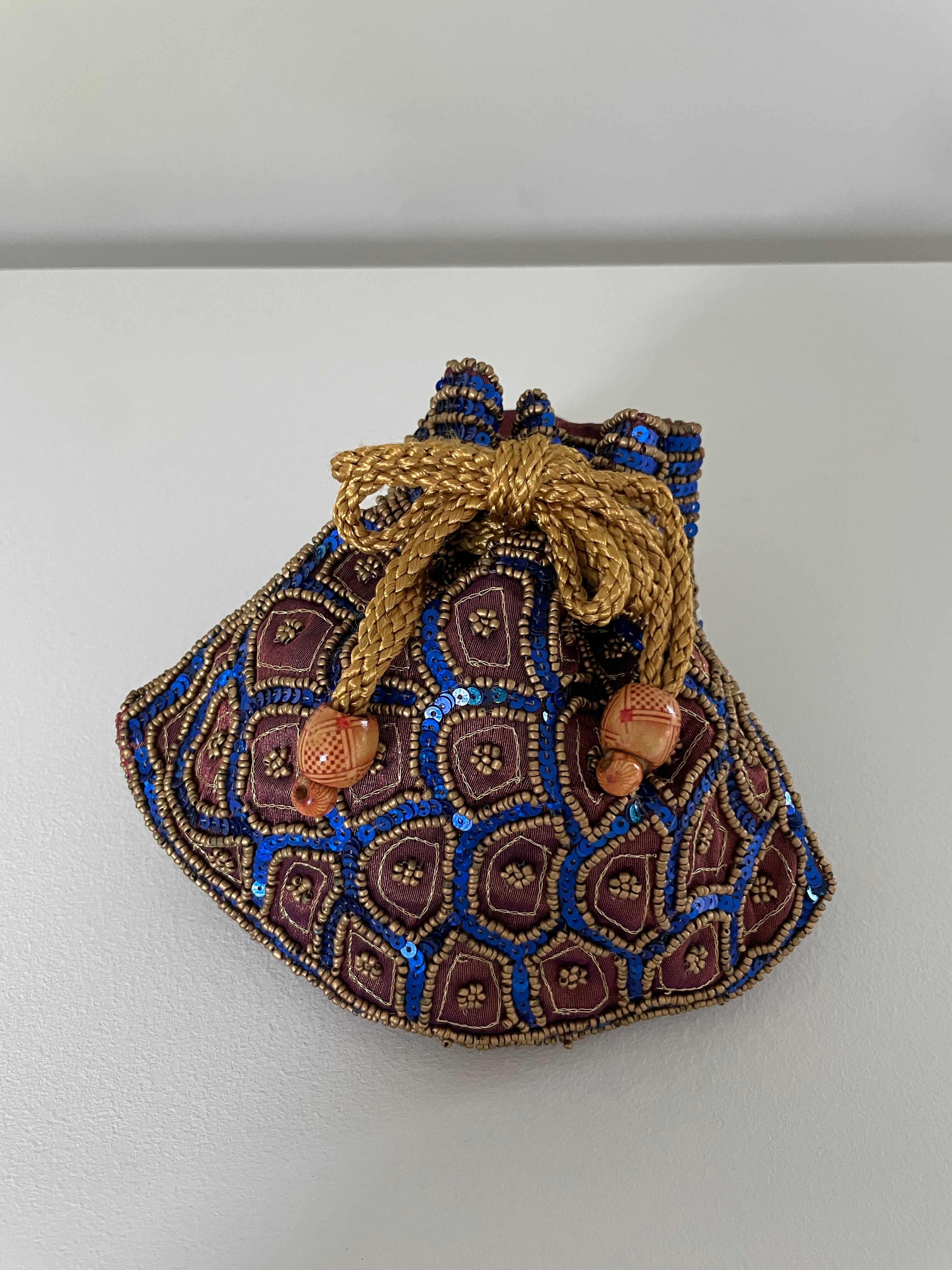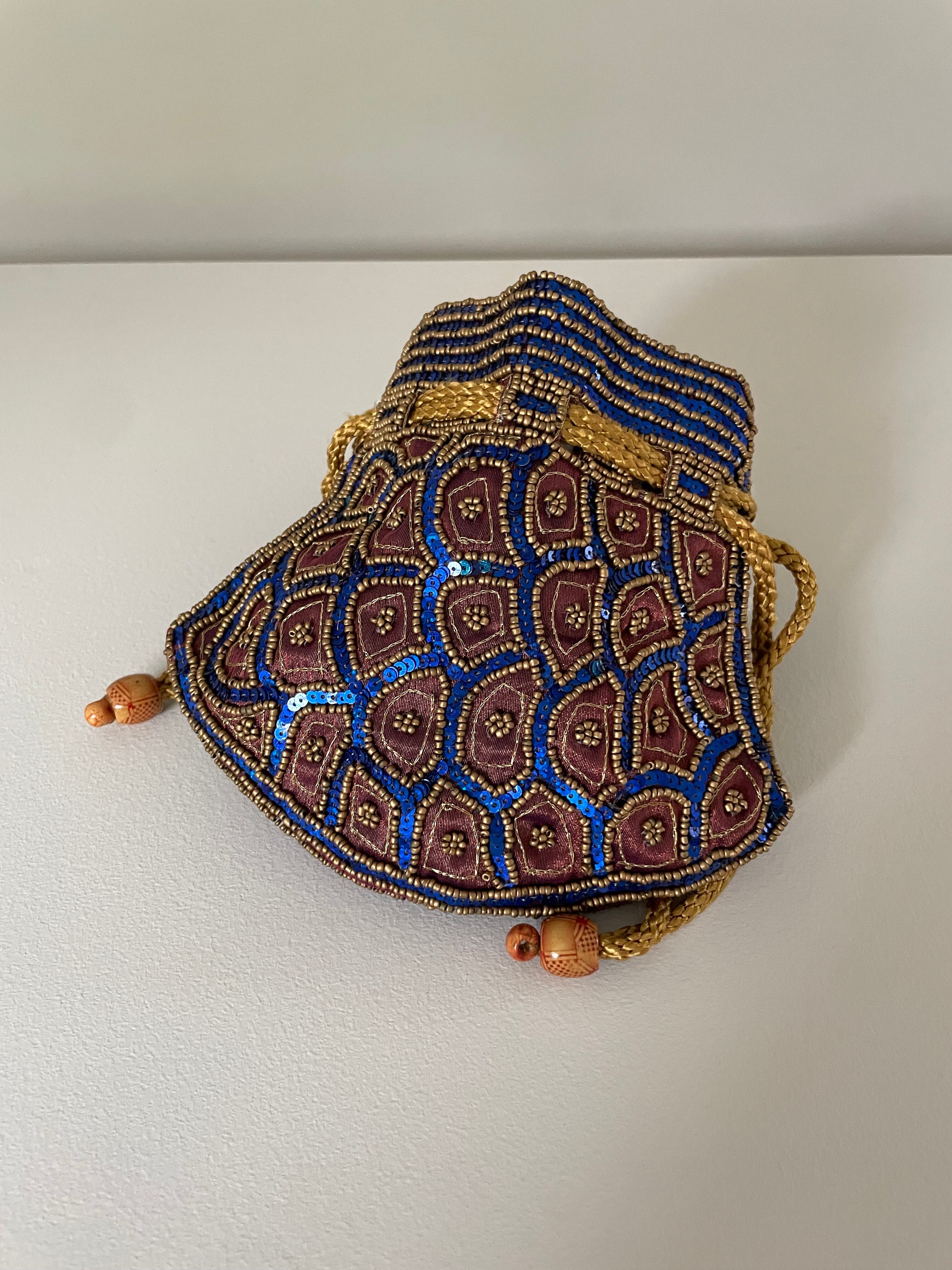 ブルーのスパンコールと、ゴールドのビーズ。