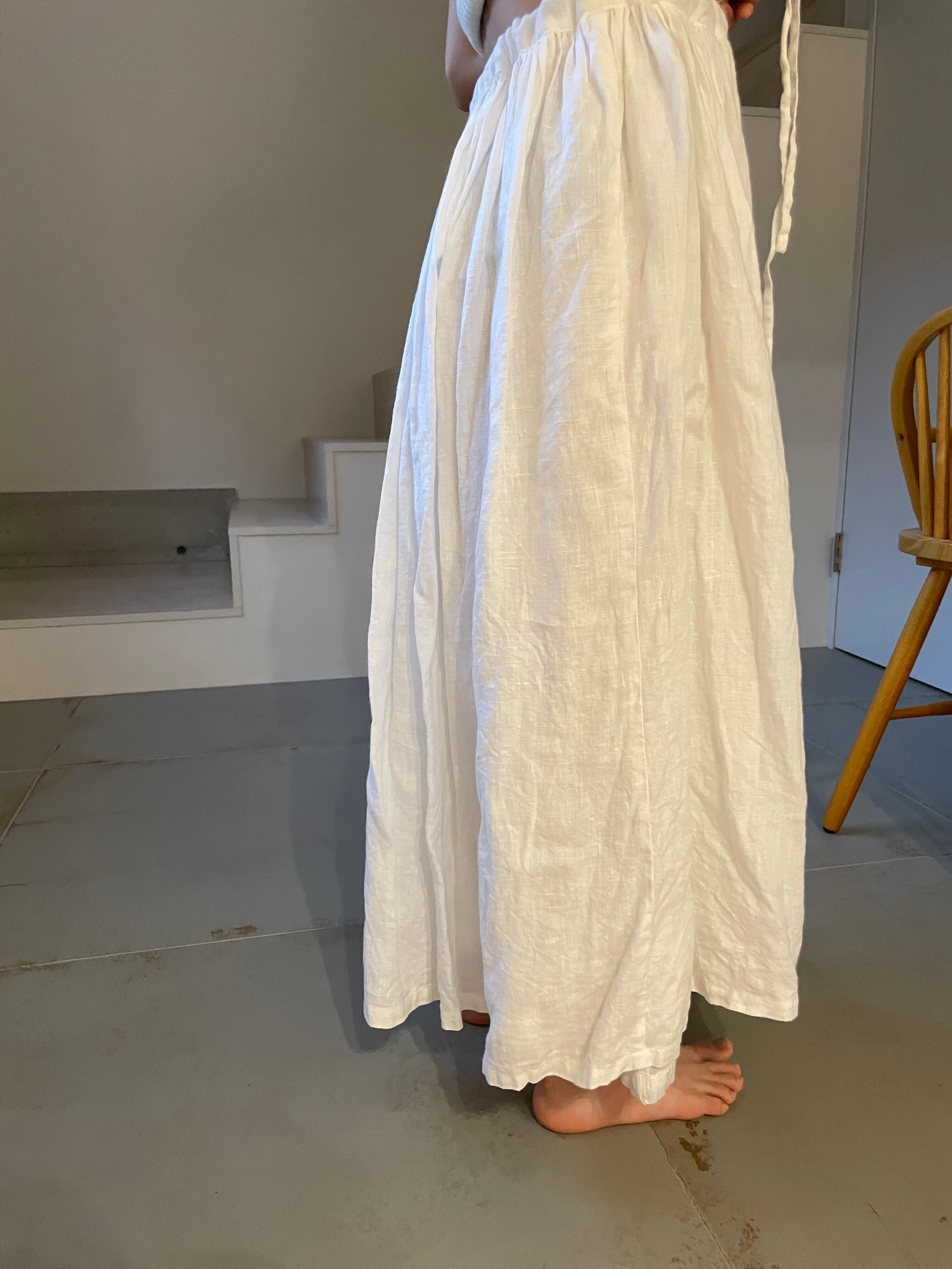 ウエストゴム使用。内側で紐(同じリネン生地)