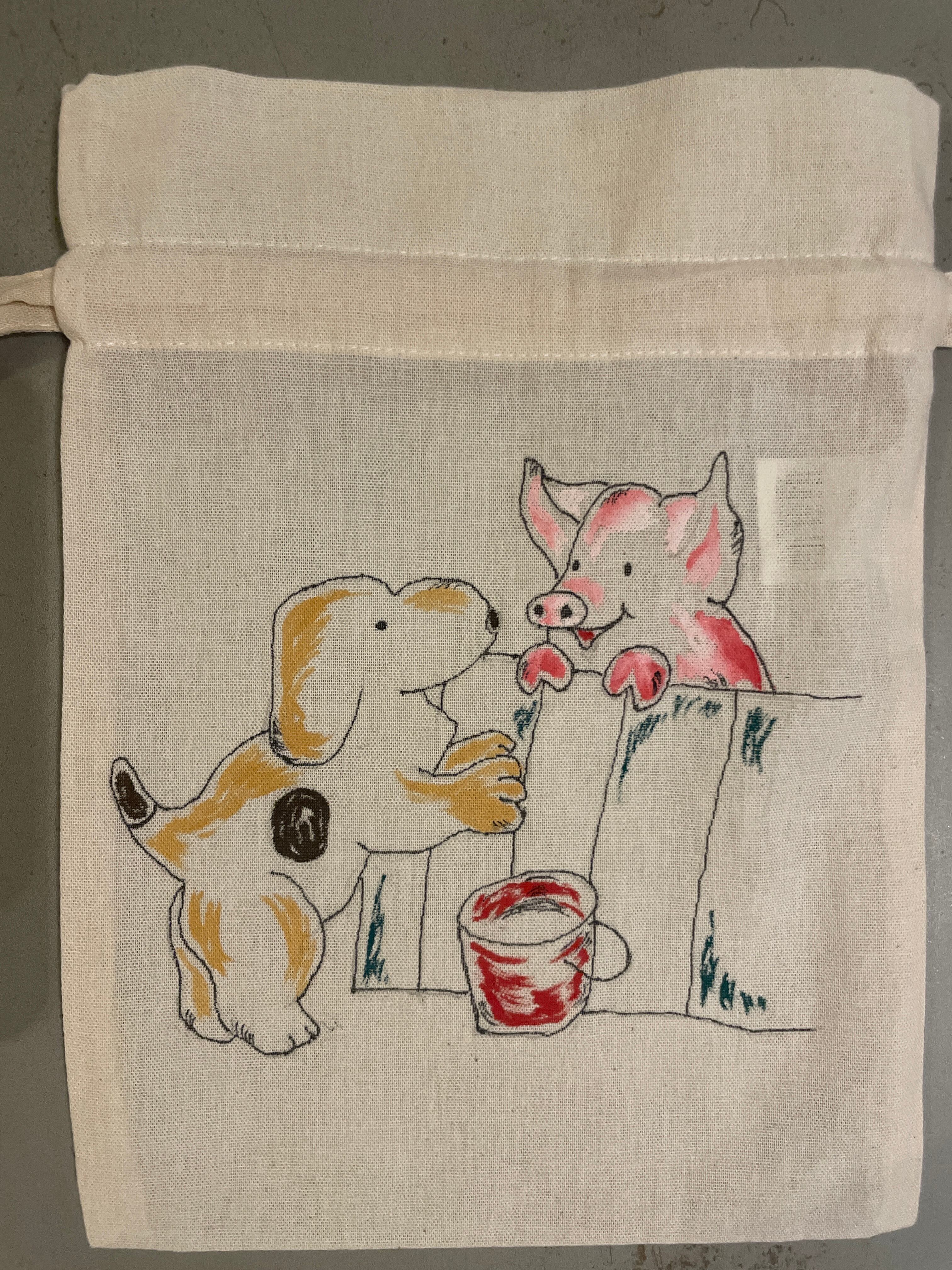 i love spot. handpaint kinchaku.